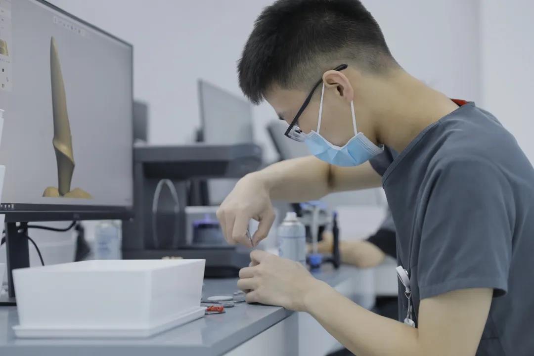紧挨着的是让种植牙更精确、更完美、使用效果更好的先进设备。比如2个小时就可以制作一副牙冠的高效设备;比如可以打印种植导板的3D打印机……