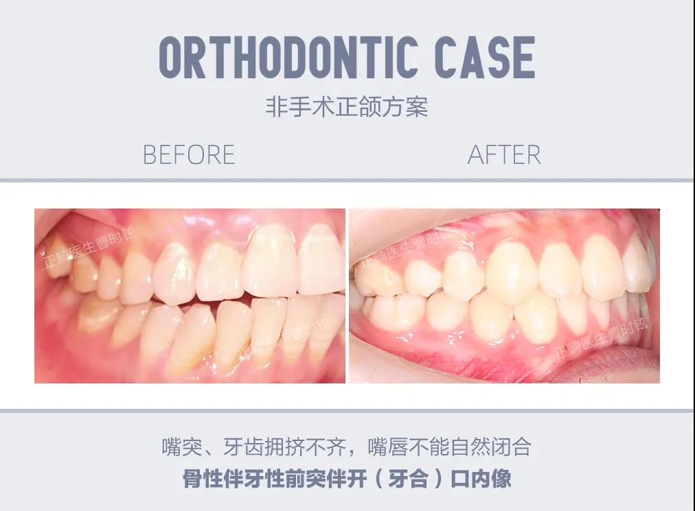 这个骨性伴牙性双颌前突伴开(牙合)的效果,让患者和医生都很满意。