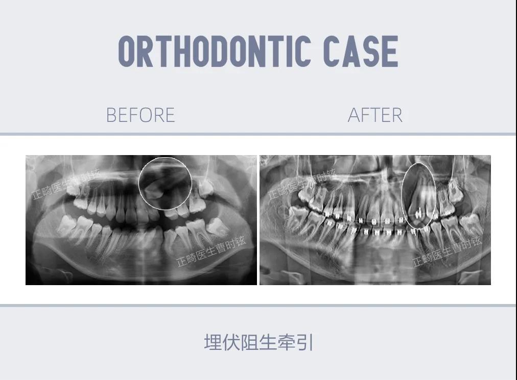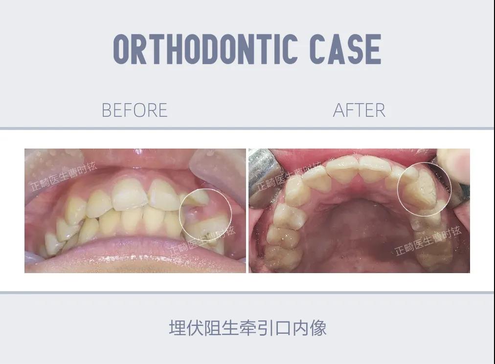 经过两年多的矫正,患者的23号牙齿牵出至原位置,再不损伤自己的牙齿的情况下,通过矫正完成牵引。