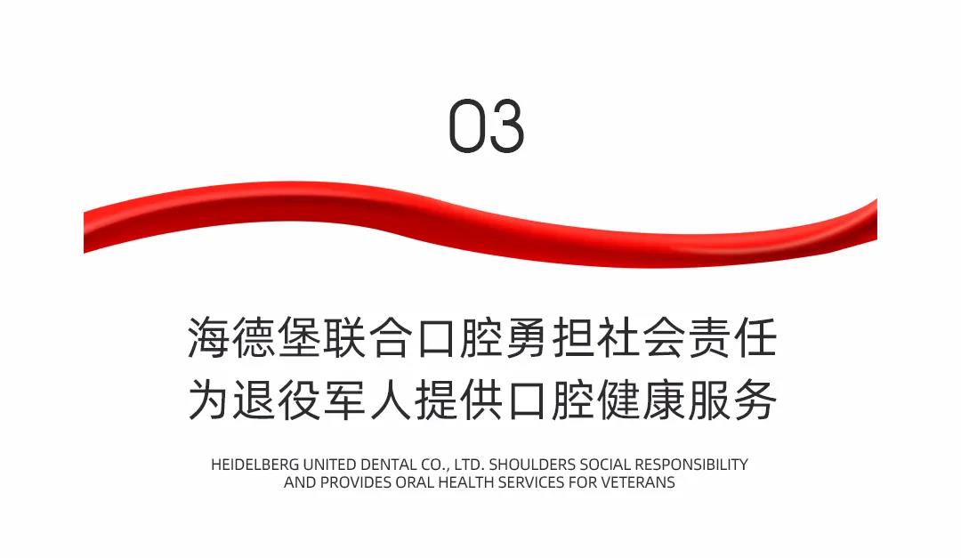 “传承红色精神,关爱退役军人”。正如海德堡联合口腔医院的初心,通过公益口腔诊疗活动为我们的退役军人送去热烈的敬意与健康,真正“零距离”关爱曾经为祖国和平而奉献热血青春的退役老兵们的牙齿健康,让关爱看得见。