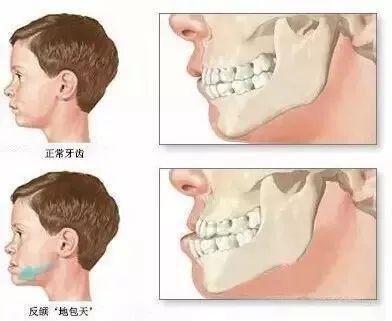 3、骨源型:多由遗传和疾病等因素所致。除前牙反合外,反覆盖大,磨牙为近中合,并有颌骨畸形,表现为下颌体长,下颌支短和下颌角钝,上颌发育不足,额部明显前突,下颌不能自行后退,面部呈凹面型,有时还伴有开合畸形。