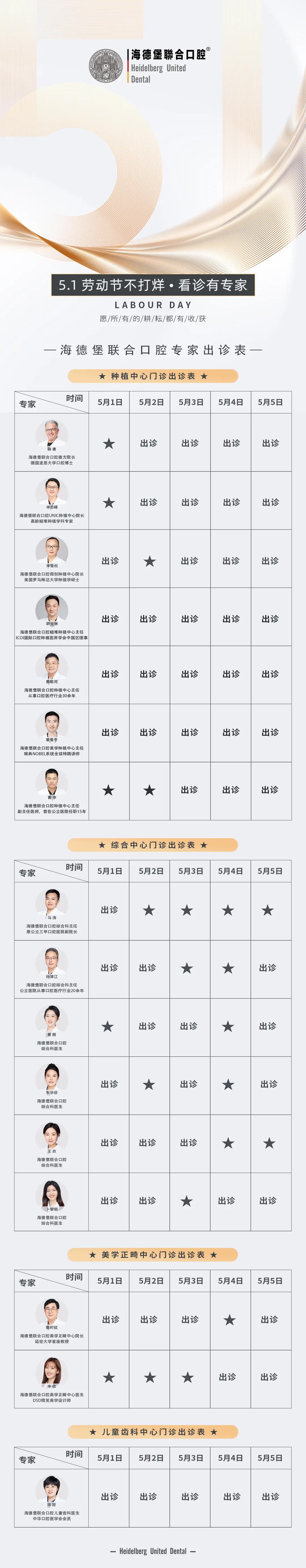 5.1小长假不打烊 | 海德堡联合口腔劳动节多位专家正常接诊,守护您的口腔健康