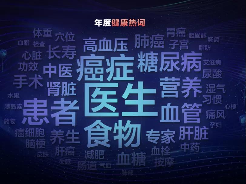 日前,大型网络平台统计的国人健康关注度大数据新鲜出炉。数据显示,2019年每天约有3500万人在平台浏览健康类内容,阅读量高达540亿。统计还发现,年度搜索率关注度第一的健康热