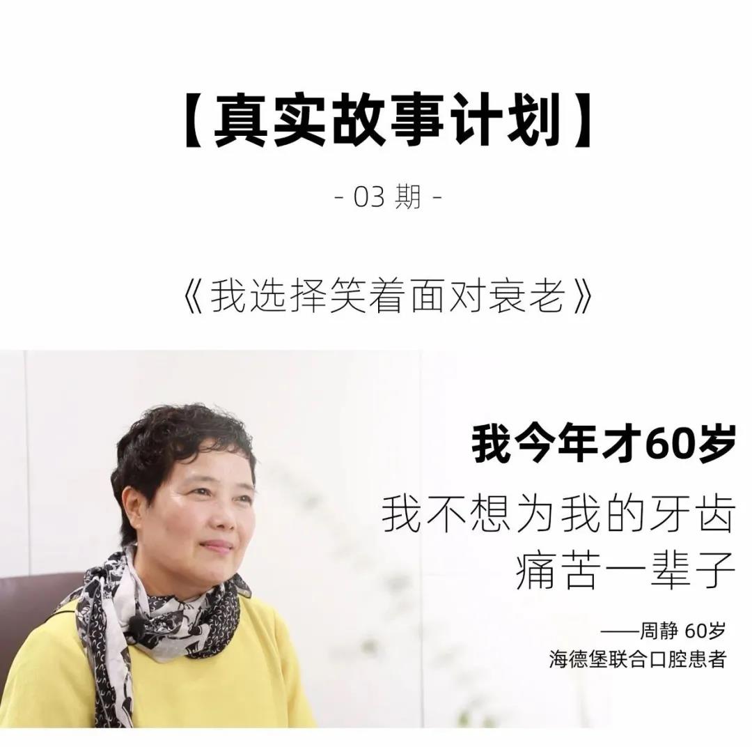 对于今年只有60岁的周阿姨来说,她今后的20、30年能够拥有更加精彩、丰富、自信的生活,这是一口健康的好牙给她的,也来源于自己对于“衰老”不服输的那股子精神劲儿.