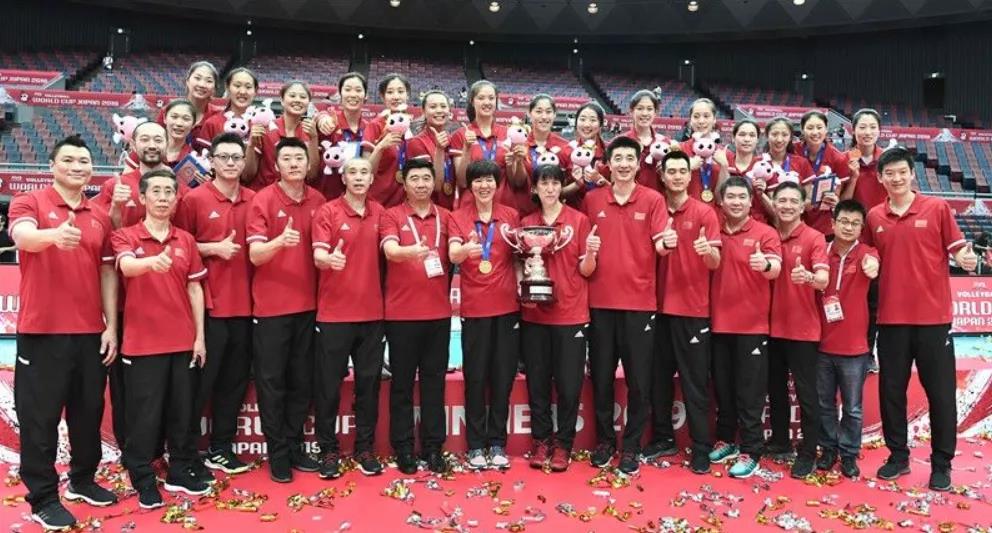 2019年,女排获得世界杯冠军合影留念时刻