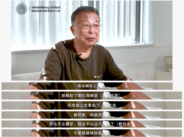 程叔叔在电视上看到了海德堡联合口腔医院,他当时的第一印象就很信任。得知海德堡联合口腔源自德国的口腔诊疗标准后,叔叔立刻前往海德堡联合口腔。