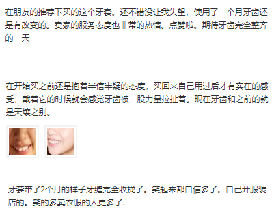 更神奇的还在后面,正常需要一两年才矫正好的牙齿,在这些牙齿矫正器的评论区却惊现两个月月就完成了矫正,两三天就有了效果的例子。