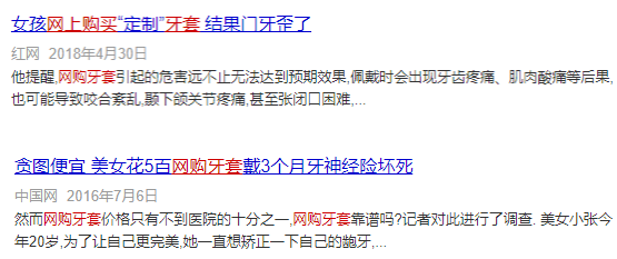 看了上面的百元牙套的种种“优点”之后,你还敢不敢在网购平台上进行“牙齿矫正”呢?