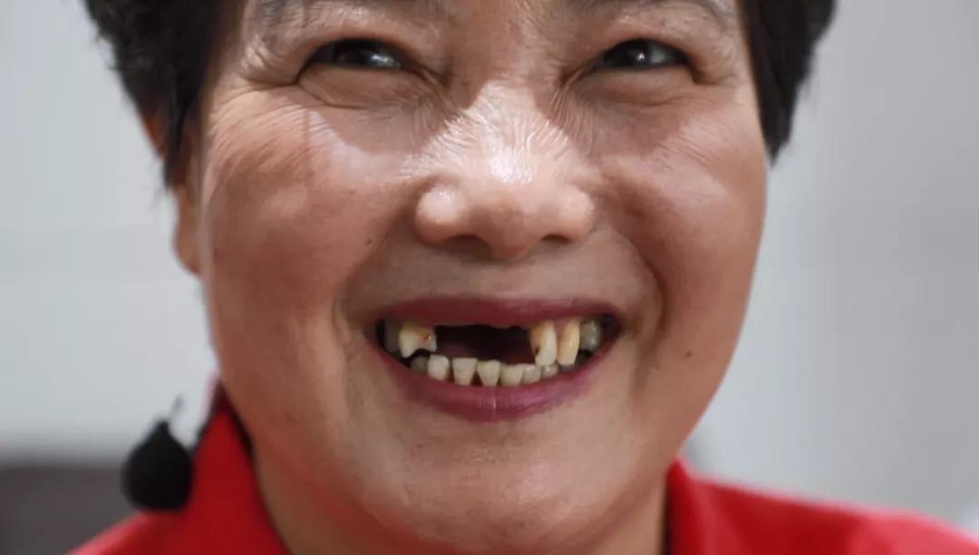 好面子的周阿姨只默默忍受假牙摘戴时的疼痛与不适,拍照时还不能笑得太开心,怕自己的假牙随时会从嘴里掉出去,出现尴尬的场景。