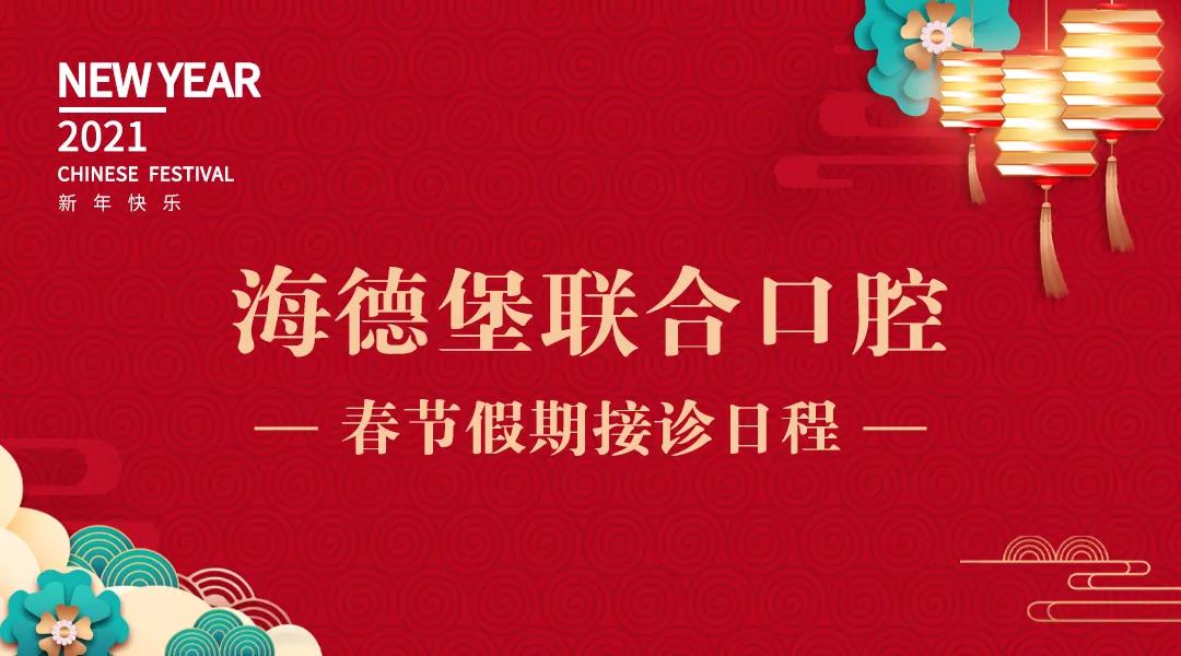 在这喜庆的时刻,先提前给信任海德堡联合口腔的朋友们拜一个早年,祝大家新年快乐,阖家幸福!