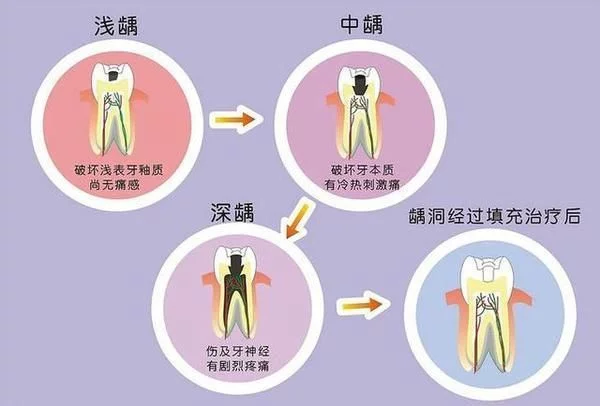 2、对恒牙发育的不良影响:乳牙深度龋坏时,可直接影响对应的恒牙牙胚的生长,造成换牙后萌出的恒牙龋病;