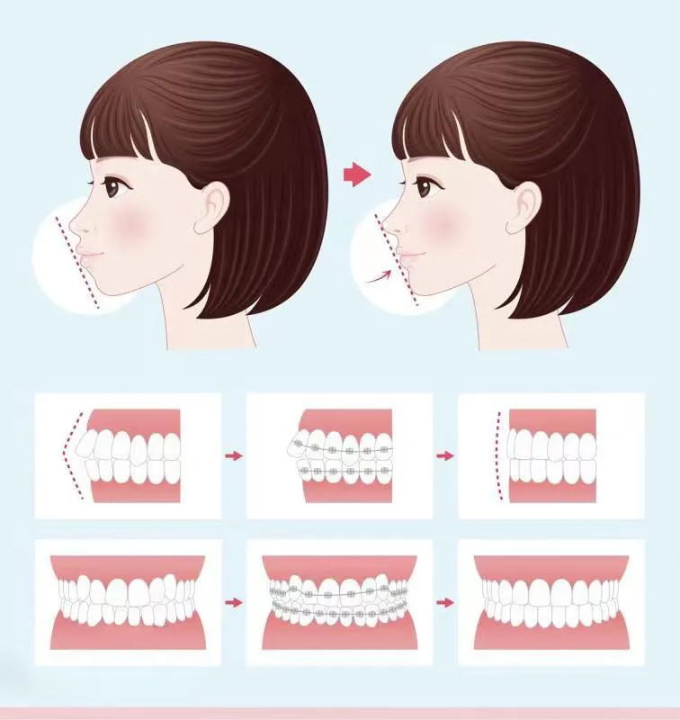 “那既然是龅牙,戴牙套就可以矫正了吧?”不是的。“牙齿矫治,要因“牙”而异,单纯的牙齿排列不齐可以戴牙套矫正,而这种骨性龅牙就需要外科手术才能得以矫正。外科手术根据事先设计的理想颜面结构关系和比率来重新组合颜面骨骼位置,恢复牙齿和颌面正常。