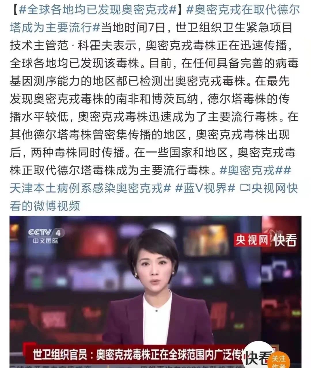 1月8日,天津发现新冠病毒奥密克戎变异株确诊病例。1月9日,就在天津疫情爆发之时,世卫组织表示,奥密克戎已经攻陷了全世界,全球各地都发现了它的踪影。