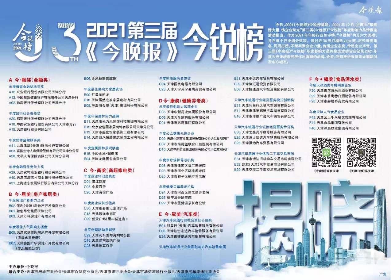 作为《今晚报》联合主流行业协会推出的年度重磅活动,此次“今锐榜”主题为“融品牌力量·铸企业荣光”,旨在记录2021年度为天津城市经济作出突出贡献的品牌、企业。