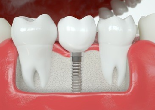 利用金属植体放在牙槽骨内,作用就如牙齿的牙根一样,作假牙的锚基,令假牙稳固。
