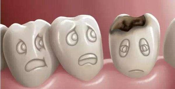 其实,早期的蛀牙可能只是一小块白色斑点。而窝沟区的蛀牙,最早可能只是一个小黑点,随着龋齿的发展,小黑点会逐渐变大,之后龋齿继续发展,表面坍塌形成小洞。如果没有及时治疗,小洞就会变成大洞,吃冷热食物或甜食时就会开始有酸痛的感觉。龋齿继续恶化,细菌侵入到牙髓引起牙髓炎,牙齿才开始剧痛。